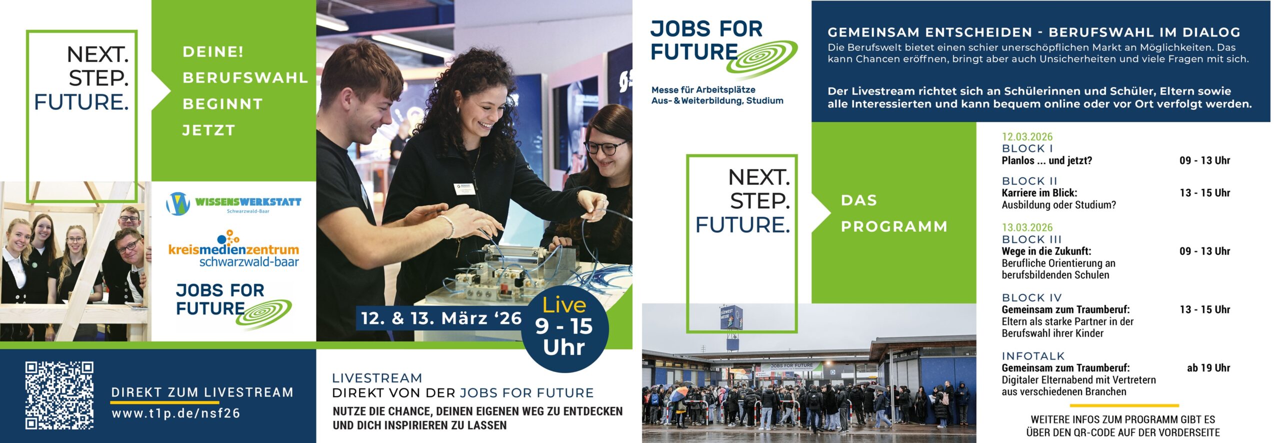 Ob Stellenangebote, Studien- und Ausbildungsplätze, Praktika und Weiterbildungen – die Jobs for Future ist eine Messe für Alle, die beruflich ihre Möglichkeiten kennen lernen oder nutzen wollen. Das Messekonzept ist klar beschrieben: Alles kompakt auf kurzen Wegen und unter einem Dach.